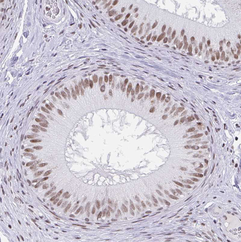 Immunohistochemistry analysis in human epididymis and liver tissues using HPA061478 antibody. Corresponding PBX2 RNA-seq data are presented for the same tissues.