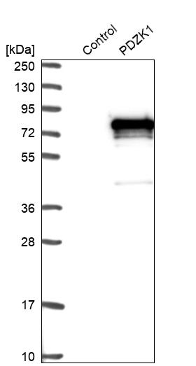 Immunohistochemistry analysis in human kidney and lymph node tissues using Anti-PDZK1 antibody. Corresponding PDZK1 RNA-seq data are presented for the same tissues.