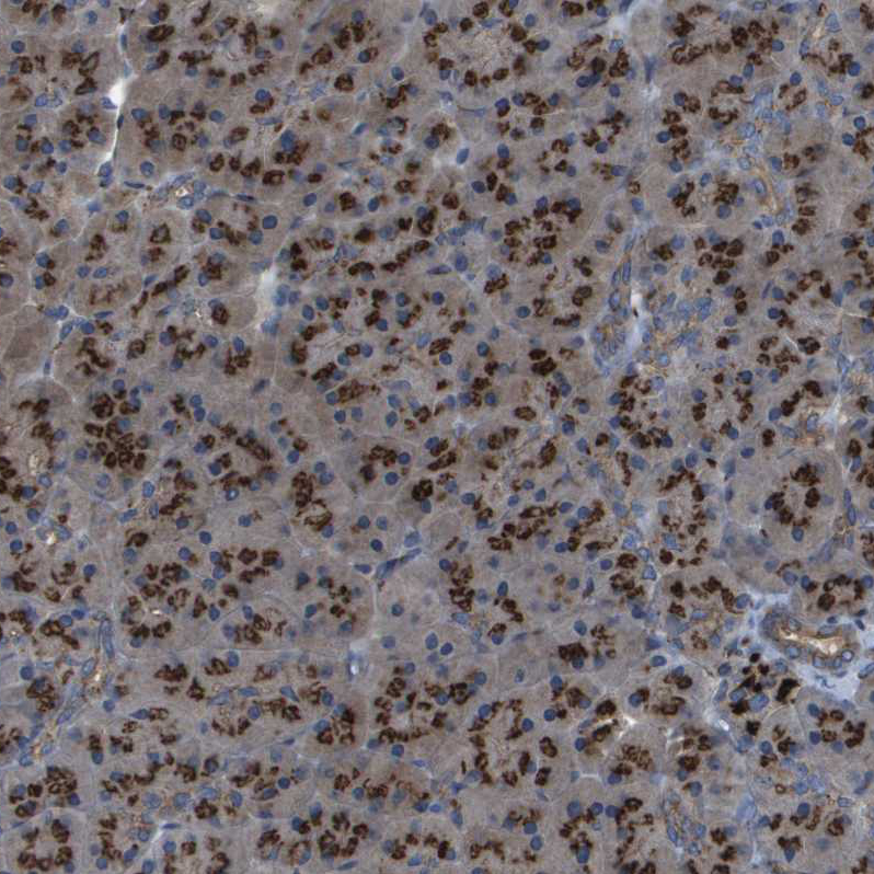 Immunohistochemical staining of human adrenal gland shows positivity in glandular cells.
