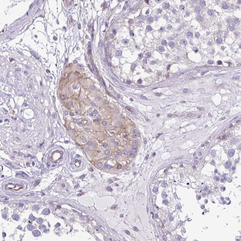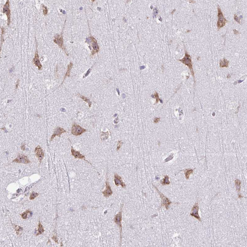 Immunohistochemical staining of human pancreas shows strong cytoplasmic positivity in exocrine glandular cells.