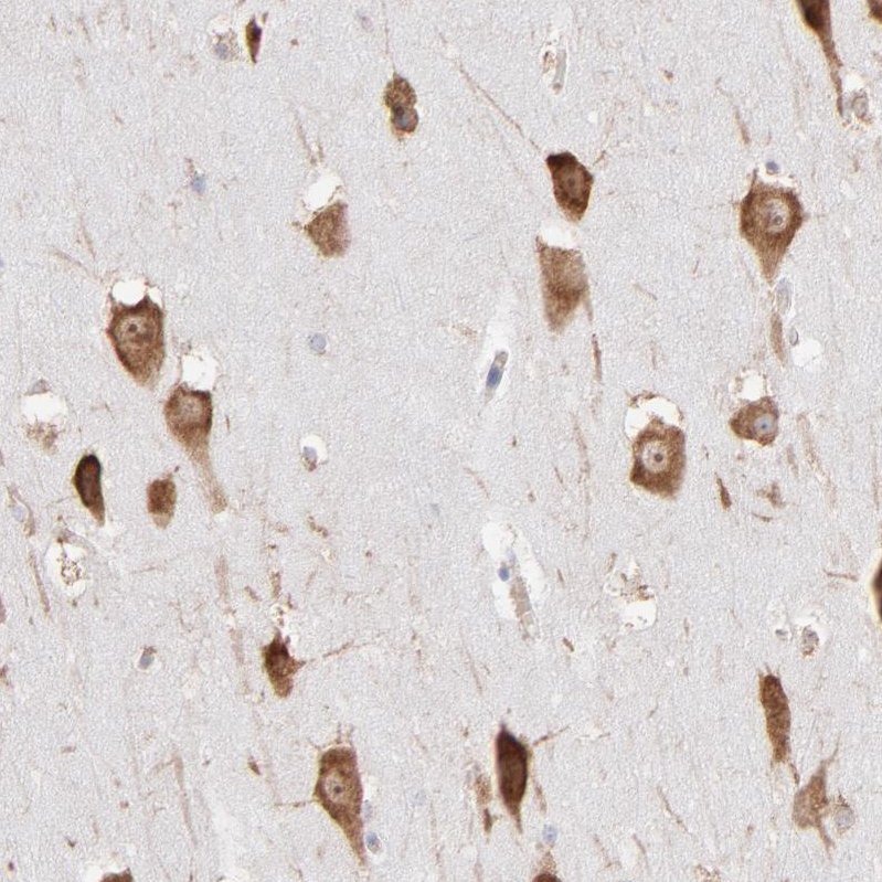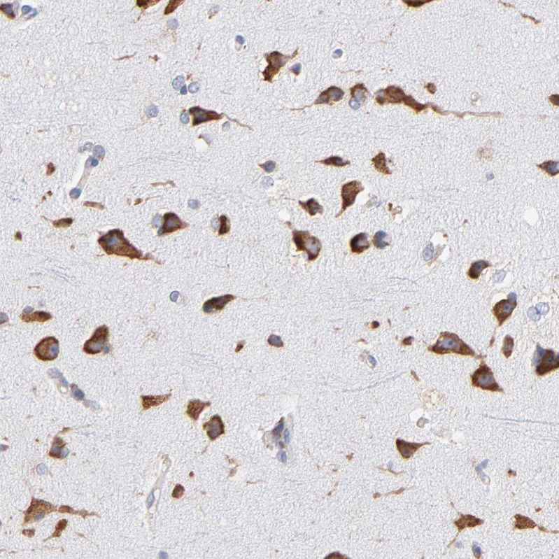 Immunofluorescence staining of mouse lateral septum shows positivity in neurons.