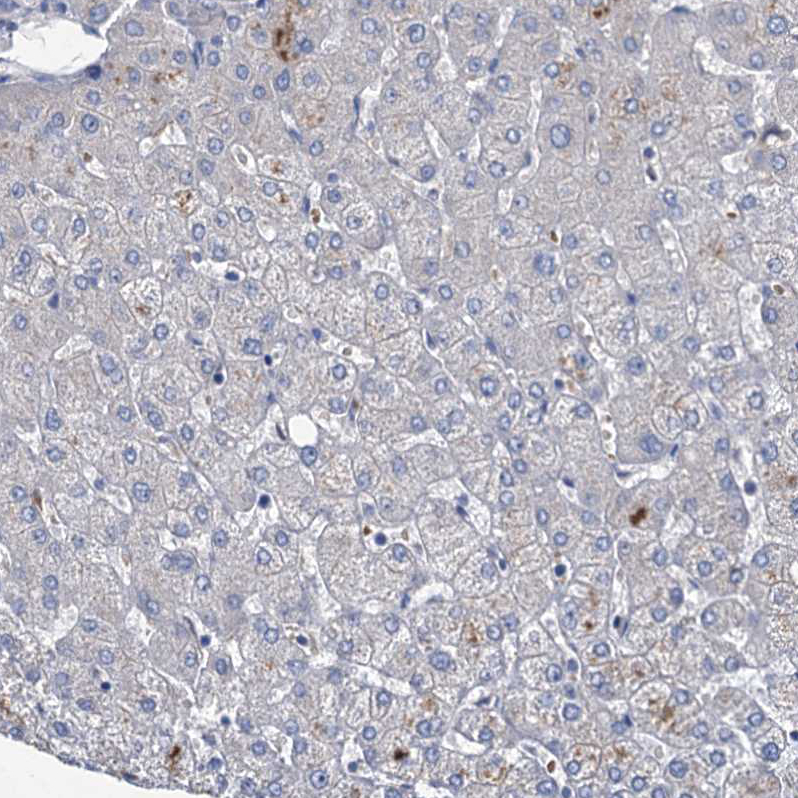 Immunohistochemical staining of human lung shows moderate cytoplasmic positivity in macrophages.