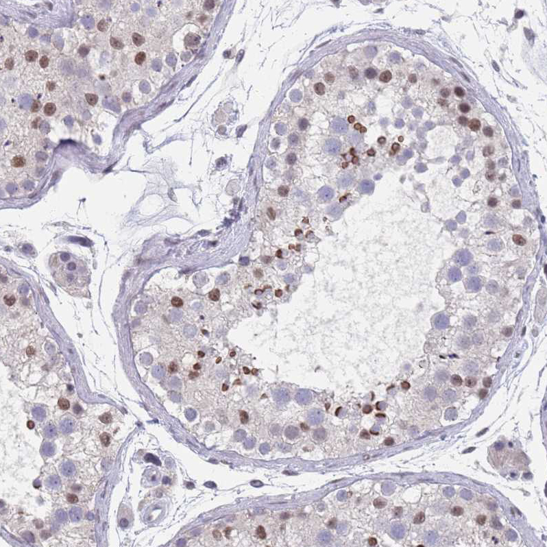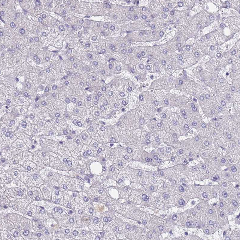 Immunohistochemical staining of human cerebellum shows moderate cytoplasmic positivity in neuronal processes.