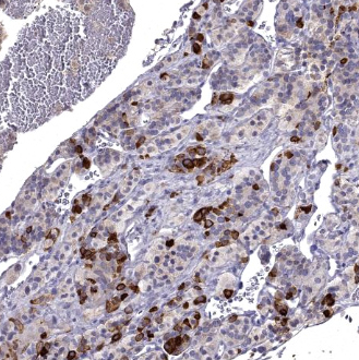 Immunohistochemistry analysis in human adrenal gland and skeletal muscle tissues using HPA074618 antibody. Corresponding SCG5 RNA-seq data are presented for the same tissues.