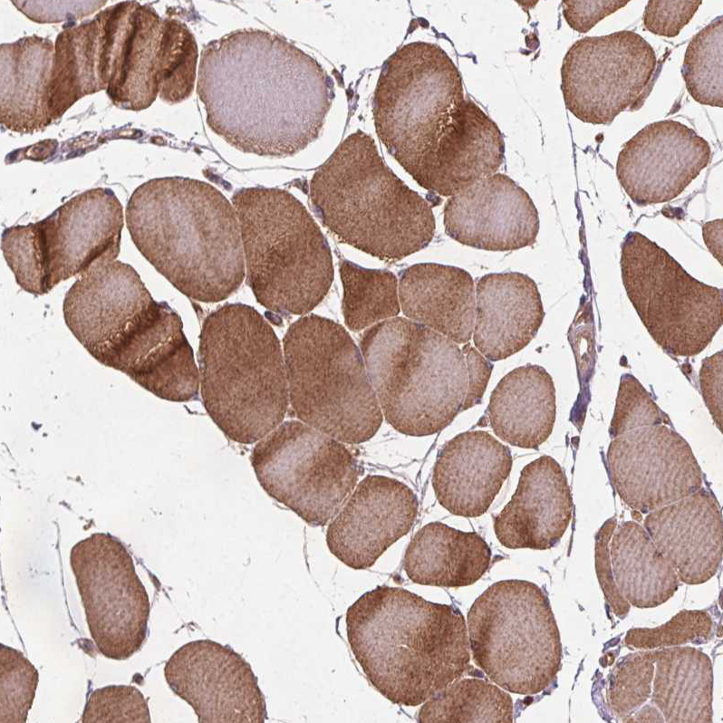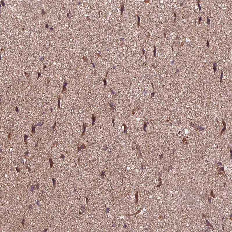 Immunohistochemical staining of human liver shows moderate cytoplasmic positivity in hepatocytes.