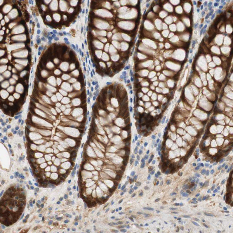 Immunohistochemistry analysis in human colon and tonsil tissues using HPA011731 antibody. Corresponding SELENBP1 RNA-seq data are presented for the same tissues.