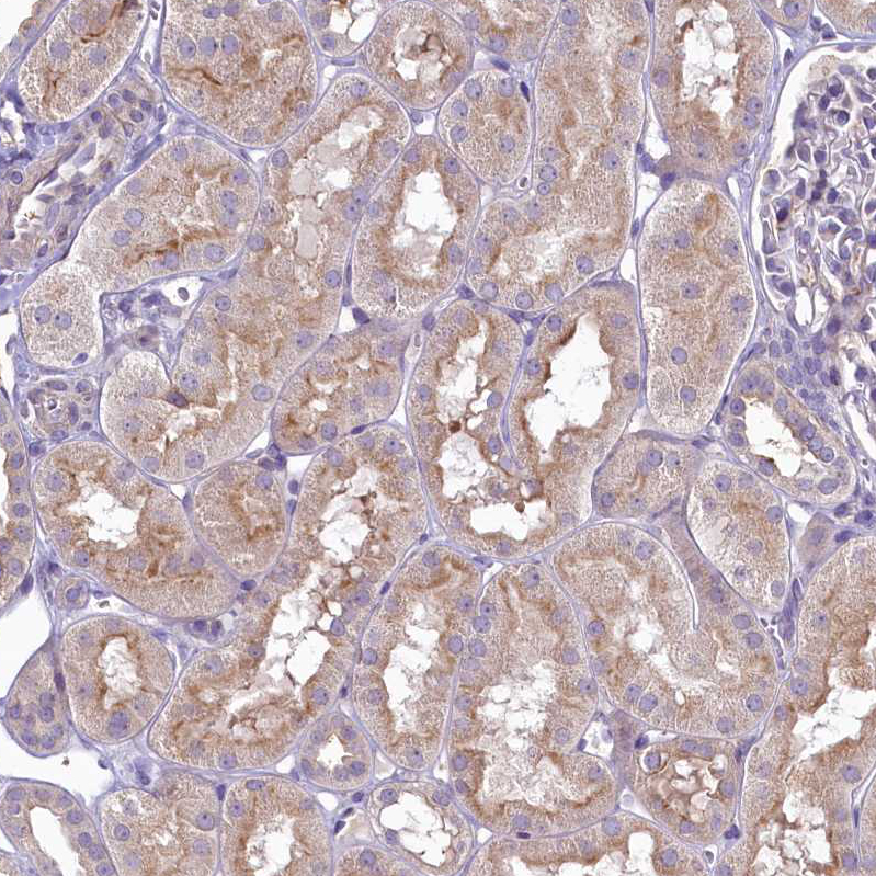 Immunohistochemical staining of human urinary bladder shows strong membranous positivity in urothelial cells.