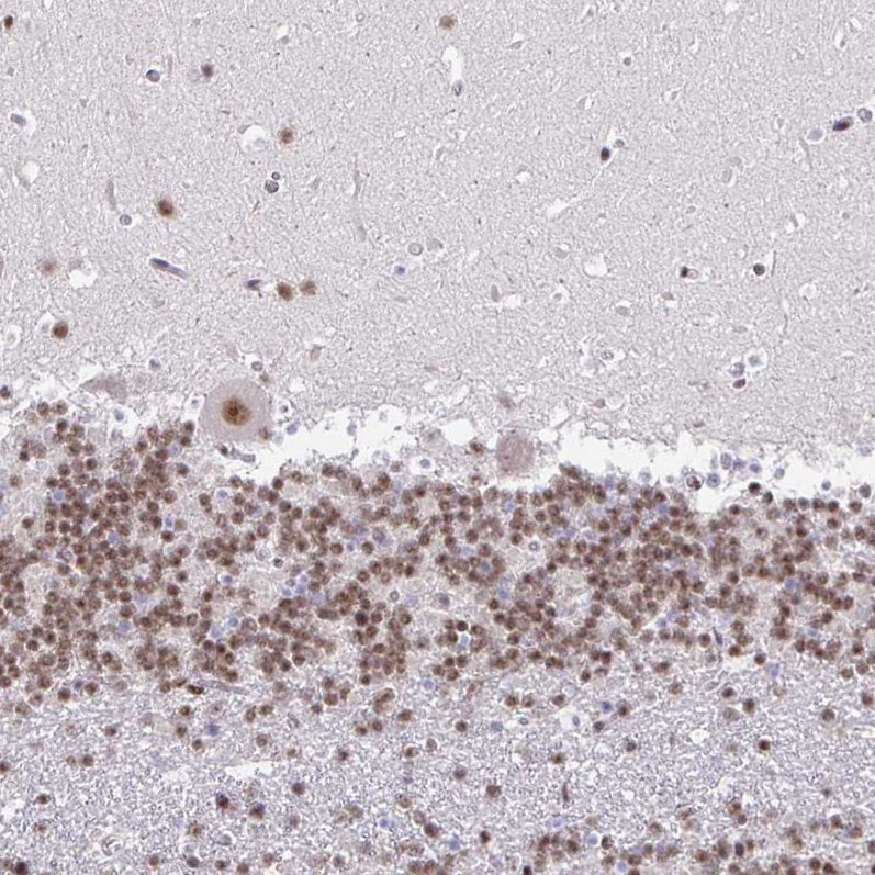 Immunohistochemical staining of human cerebellum, kidney, liver and testis using Anti-SIN3A antibody HPA062123 (A) shows similar protein distribution across tissues to independent antibody HPA047213 (B).