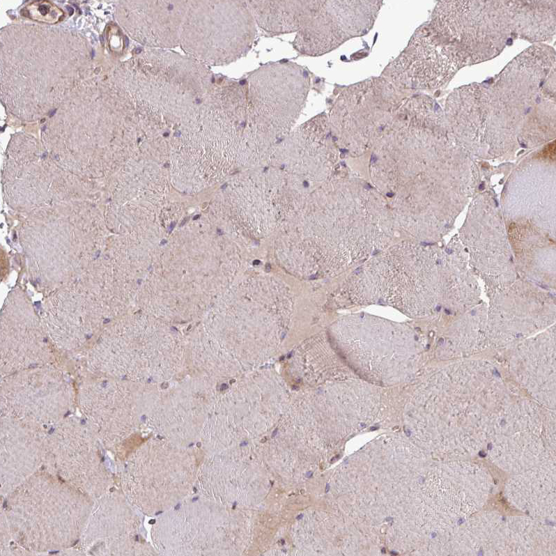 Immunohistochemical staining of human placenta shows weak to moderate membranous positivity in trophoblastic cells.