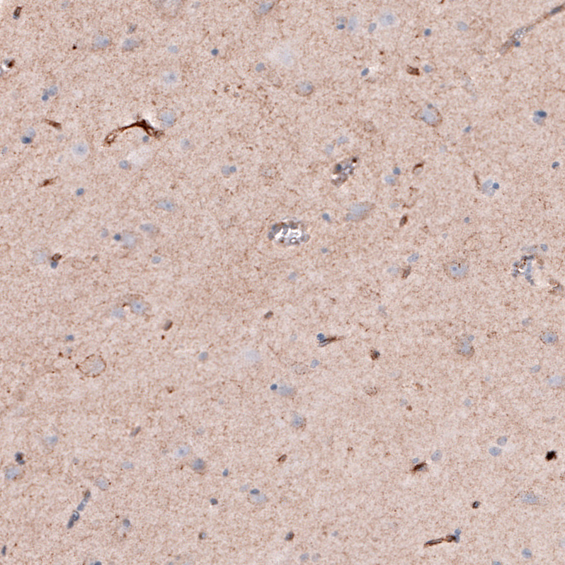 Immunohistochemical staining of human liver shows moderate to strong membranous positivity in hepatocytes.