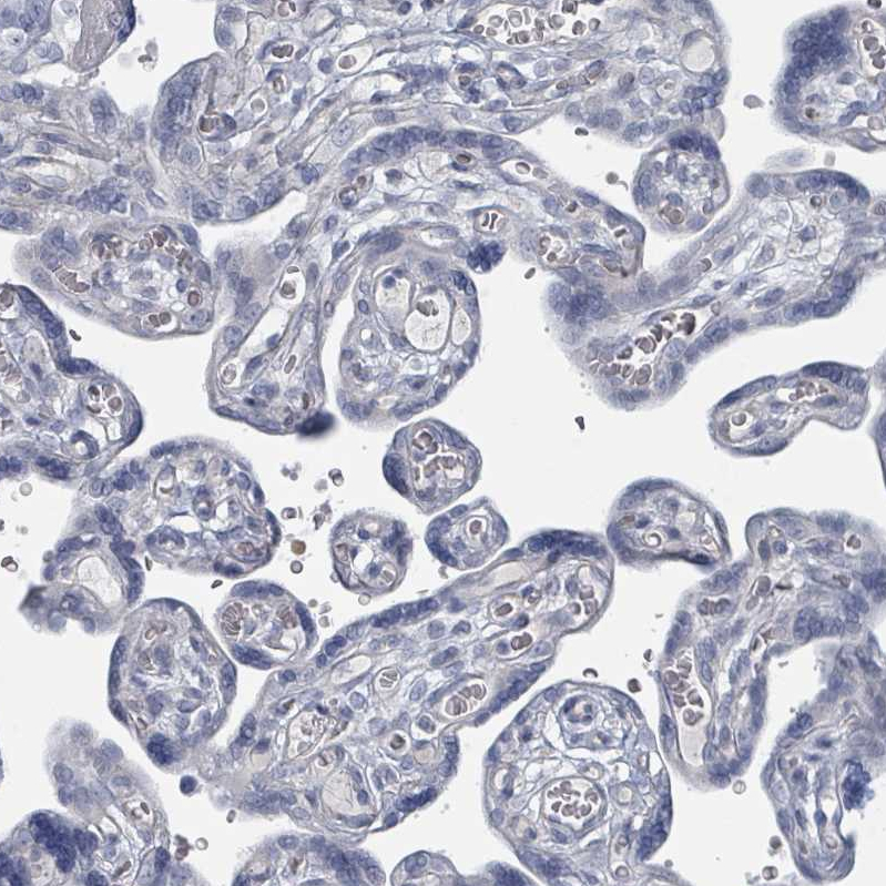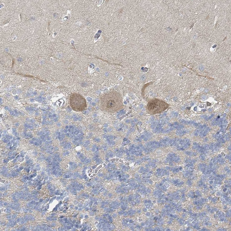 Immunohistochemical staining of human small intestine shows strong cytoplasmic positivity in a subset of glandular cells.