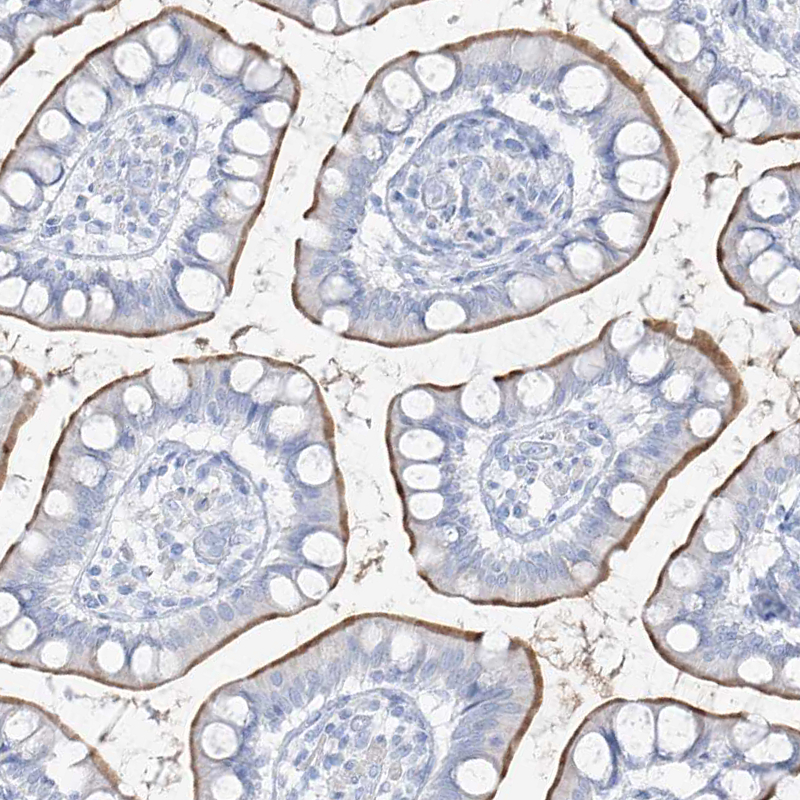 Immunohistochemistry analysis in human colon and skeletal muscle tissues using HPA036055 antibody. Corresponding SLC26A3 RNA-seq data are presented for the same tissues.