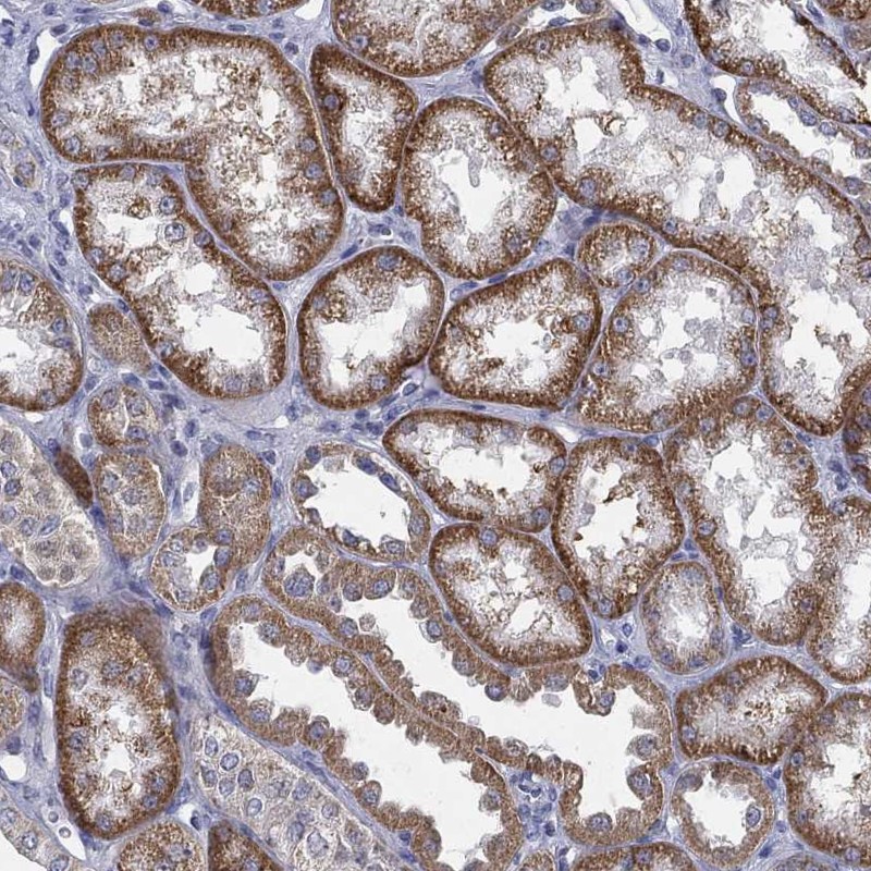 Immunohistochemistry analysis in human kidney and cerebral cortex tissues using Anti-SLC2A9 antibody. Corresponding SLC2A9 RNA-seq data are presented for the same tissues.
