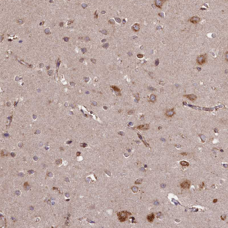 Immunohistochemical staining of human testis shows strong cytoplasmic positivity in Leydig cells.