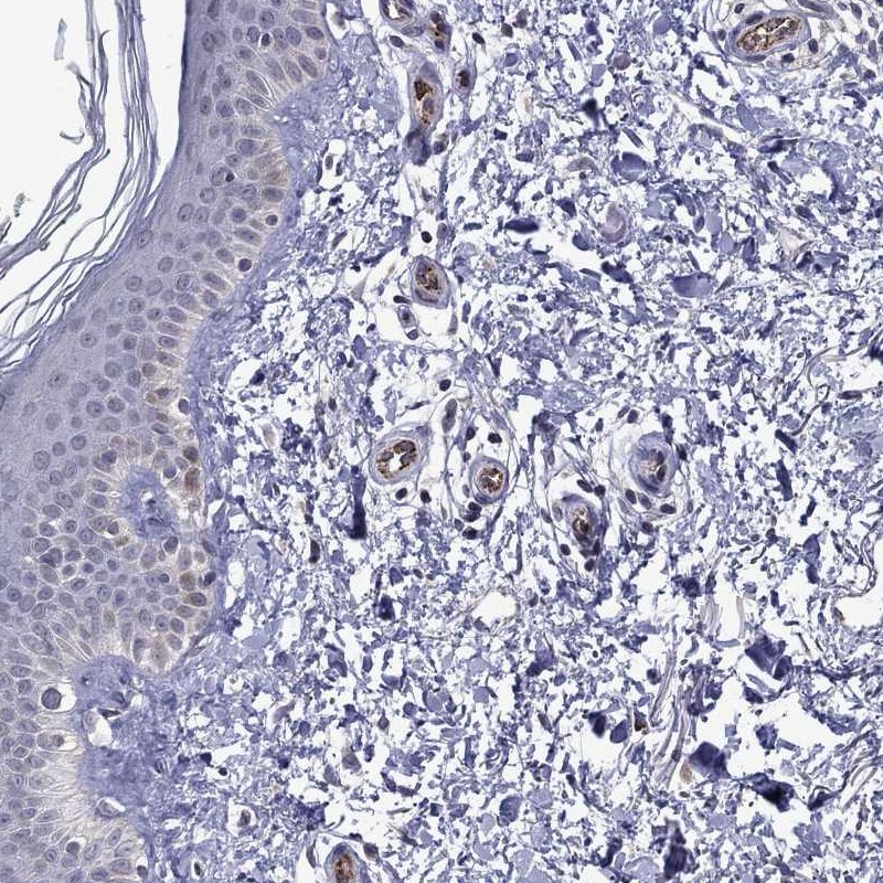 Immunohistochemistry analysis in human cerebral cortex and skin tissues using Anti-SLITRK1 antibody. Corresponding SLITRK1 RNA-seq data are presented for the same tissues.