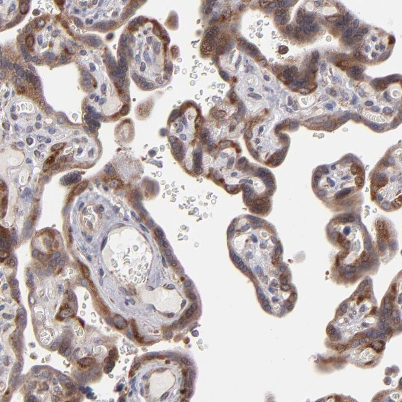 Immunohistochemistry analysis in human placenta and skeletal muscle tissues using Anti-SND1 antibody. Corresponding SND1 RNA-seq data are presented for the same tissues.