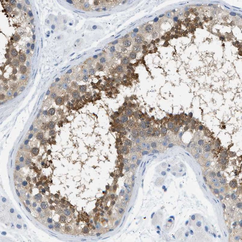 Immunohistochemistry analysis in human testis and liver tissues using HPA017984 antibody. Corresponding SPAM1 RNA-seq data are presented for the same tissues.