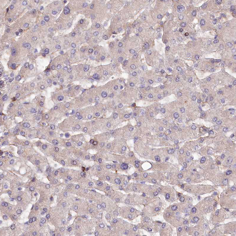 Immunohistochemical staining of human Testis shows strong cytoplasmic positivity in cells in seminiferous ducts.