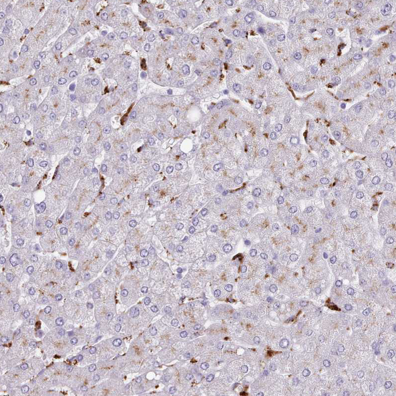 Immunohistochemical staining of human prostate shows strong granular cytoplasmic positivity in glandular cells.