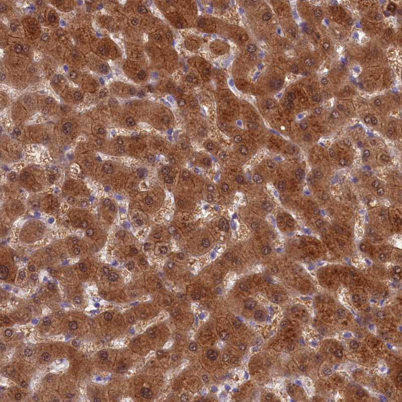 Immunohistochemistry analysis in human liver and pancreas tissues using HPA041487 antibody. Corresponding SULT2A1 RNA-seq data are presented for the same tissues.