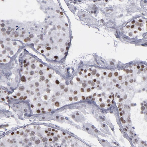 Immunohistochemical staining of human cerebral cortex, gastrointestinal, lymphoid tissues and testis using Anti-TERF2 antibody HPA001907 (A) shows similar protein distribution across tissues to independent antibody HPA002735 (B).