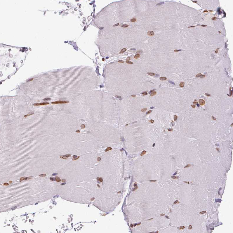 Immunohistochemical staining of human Cerebellum shows moderate positivity in nuclear membrane in glial cells.