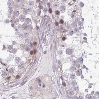 Immunohistochemical staining of human colon, fallopian tube, liver and testis using Anti-TMEM237 antibody HPA054732 (A) shows similar protein distribution across tissues to independent antibody HPA052596 (B).