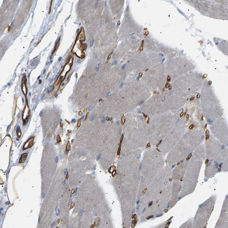Immunohistochemical staining of human cerebral cortex shows moderate to strong cytoplasmic positivity in neurons.