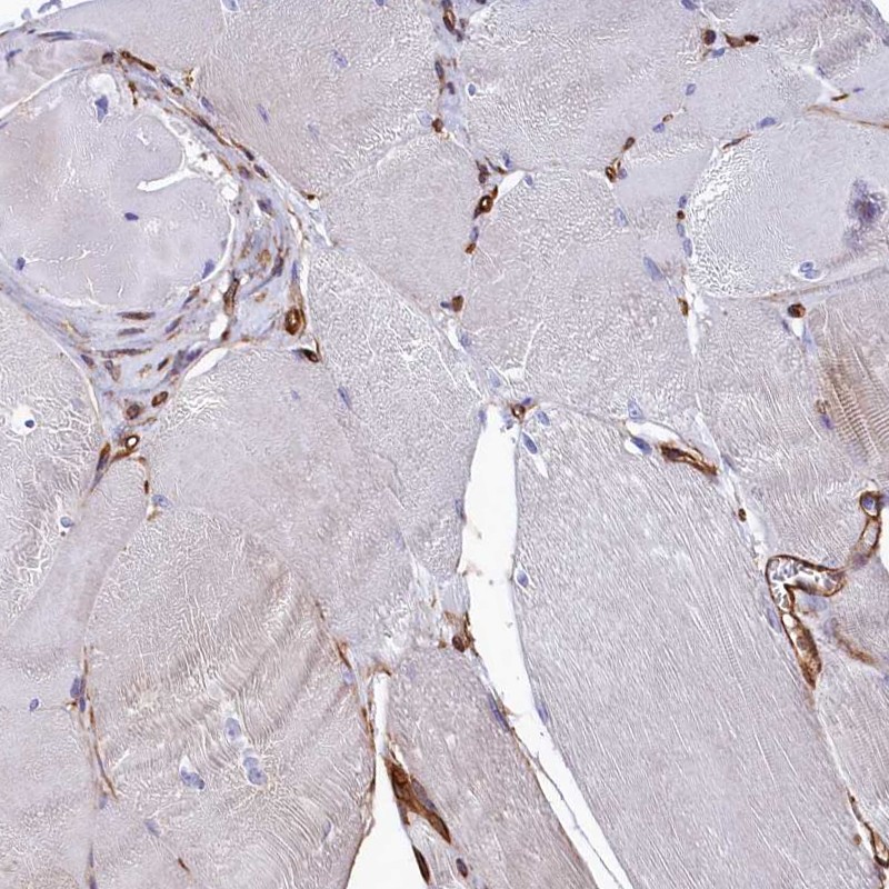 Immunohistochemistry analysis in human skin and skeletal muscle tissues using Anti-TNKS1BP1 antibody. Corresponding TNKS1BP1 RNA-seq data are presented for the same tissues.