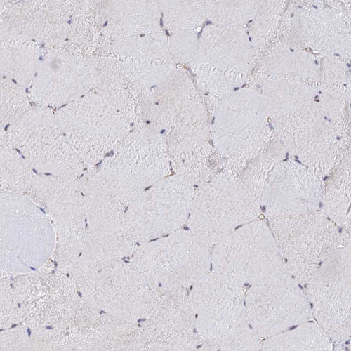 Immunohistochemical staining of human testis shows strong cytoplasmic/membranous positivity in cells in seminiferous ducts.