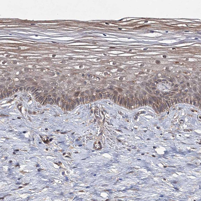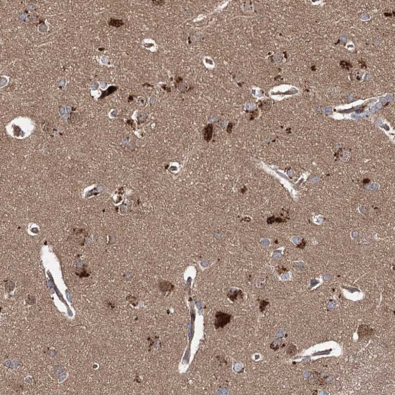 Immunohistochemical staining of human testis shows moderate to strong positivity.