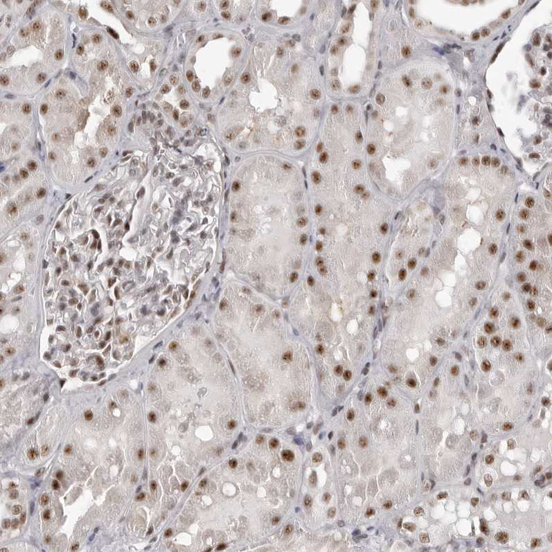 Immunohistochemical staining of human fallopian tube, kidney, liver and skin using Anti-WRAP53 antibody HPA028130 (A) shows similar protein distribution across tissues to independent antibody HPA023026 (B).