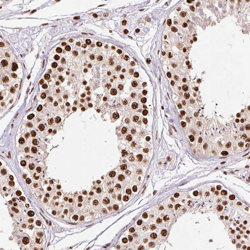 Immunohistochemical staining of human fallopian tube, kidney, lymphoid tissues and testis using Anti-XRCC6 antibody HPA047549 (A) shows similar protein distribution across tissues to independent antibody HPA062226 (B).