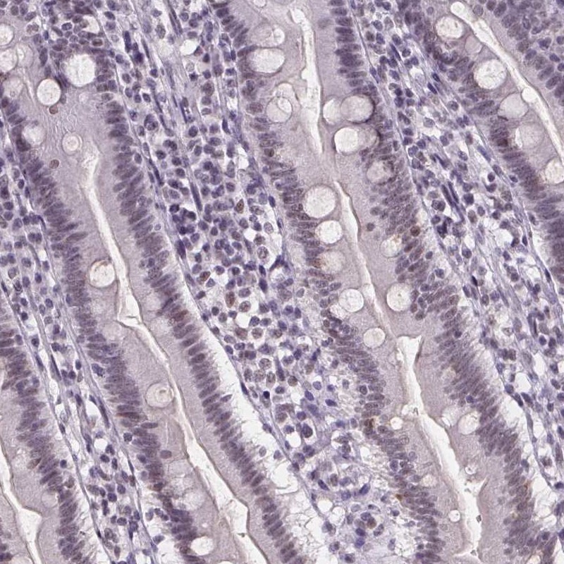 Immunohistochemistry analysis in human testis and duodenum tissues using Anti-ZNF572 antibody. Corresponding ZNF572 RNA-seq data are presented for the same tissues.